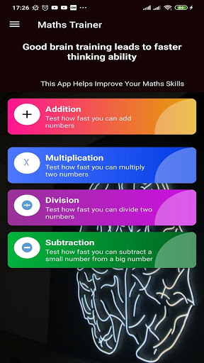 This all helps to train your brain to think faster especially when Mathematics is concern. It has figures with mathematical operators such as addition, multiplication, division and subtraction. Using this app everyday will help you resolve most of your daily issue with ease.