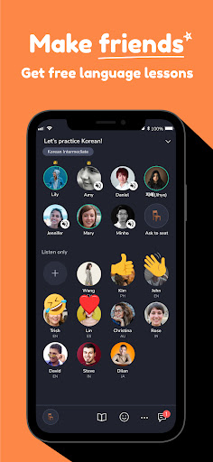 2. Not ready to speak? No problem. You can choose to be a listener or participate in written chat messages with images and emojis.