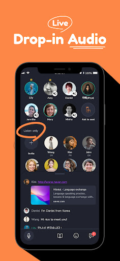 Study and interact with worldwide language learners using dropin audio. You’ll meet bilingual native speakers of your target language without needing to schedule a session!