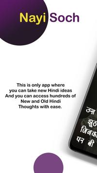 "Nayi Soch" app contains mostop all the collections of , inspiring, patriotism, motivational, confidence, Knowledge, leadership, experiences, and many more quotes and sayings from famous authors and business persons in Hindi.