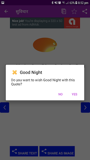 -Suvichar of the day. Set special timing for Suvichar of the day and the application will display one suvichar of the day everyday on your seted time. This functionality enables you for NO NEED TO FIND NEW GOOD MORNING QUOTE EVERY MORNING.