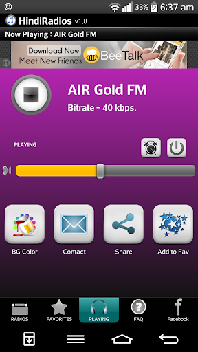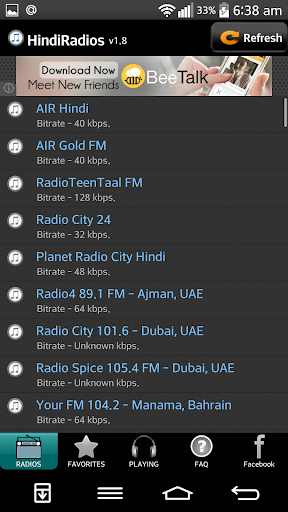 HindiRadios is a language specific app which integrates most Hindi radio stations in one place. All your favourite regional FMs are now at your fingertips. Tune to your desired stations on your Android mobile or tablet now for free.