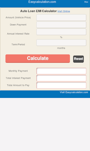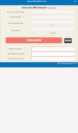 Auto Loan EMI Calculator : To calculate the equated monthly installment for your car, auto, or any four wheelers.
