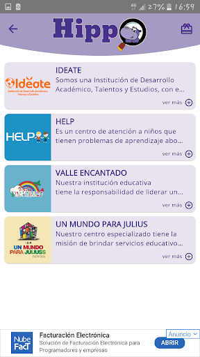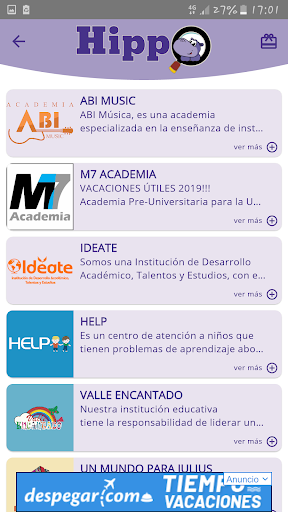 Kami adalah aplikasi yang membantu Anda menemukan pemasok layanan pelengkap untuk pelatihan pendidikan, pribadi, profesional dan sosial Anda, baik melalui lembaga atau khususnya.Situs Temukan lembaga atau layanan pribadi sesuai dengan minat Anda. Situs juga, jika Anda memberikan layanan yang selaras dengan definisi Hippo, Anda dapat mengirimkan data Anda kepada konsultan@hippoformacion.com.Kami memiliki kupon virtual untuk pengguna kami.Jika Anda ingin mempromosikan atau menyebarluaskan penawaran produk atau layanan Anda dari item apa pun, kirim pesan kepada kami.