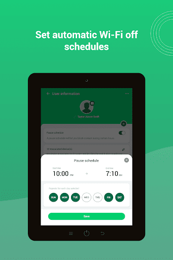 • Control online access for kids with automatic Wi-Fi off bedtime schedules.