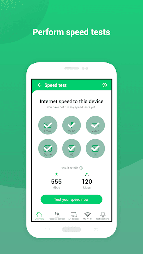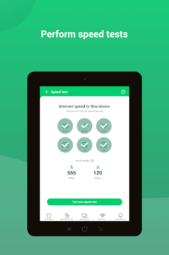 • Perform speed tests to validate the speed of your broadband connection, as well as the one to your device to determine for example the cause of a slowdown.