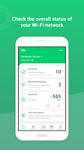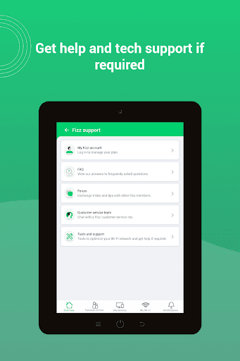 App to manage your Fizz Home Internet service and have your Wi-Fi network at your fingertips, whether you’re at home or not. View important details such as connected devices and troubleshooting alerts. Diagnose and optimize your home Wi-Fi network easily directly from your smart device.