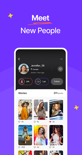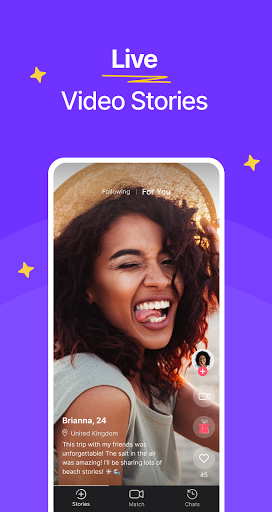 Have fun looking at new video bios, watching stories of the people you follow, starting random video chats with strangers, and having direct video chats with people you want to know more about. You'll have full-on entertainment at your fingertips when you watch, like, and follow other people's stories. It's easy to tap the heart and keep up with interesting new friends.