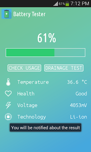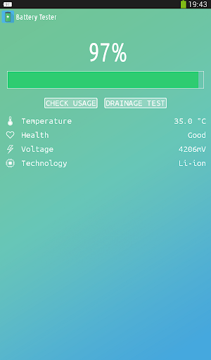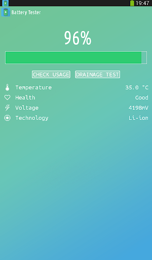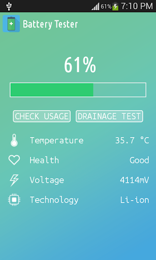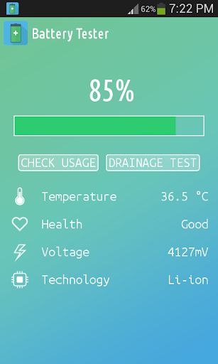 Battery Tester indicates the battery charge level of your device. Battery Tester is an app that will help you follow the current battery percentage on your Android device, and thanks to drainage test technology it notifies you if your device needs power saving mode turned on.