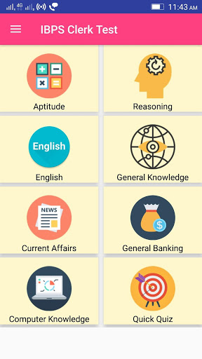IBPS Clerk Test app help to preparation for SSC CGL Test, IBPS PO, GMAT Test, CMAT Test, SBI Clerk Exam, Computer Awareness, Banking Awareness with 5000 questions.