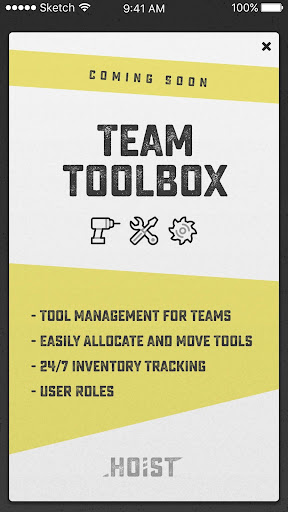 Hoist is flexible, so you can store as much or as little information as you like about your tools . Everything from purchase dates, serial numbers, photos, receipts, and pictures of your equipment - we store it all.