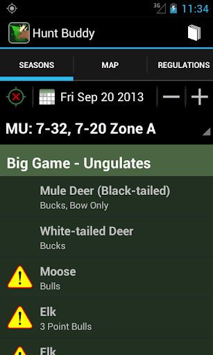 Pick any date to see the seasons & restrictions that will be in effect when and where you're planning to hunt. You don't have to flip back and forth through the tables and maps - it's all there, and it's organized so you can find what you need quickly and easily.