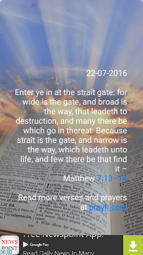 In this free app we have gotten together all of the Best Bible Verses we could find. Everyday the app simply shows you a new verse on top of a beautiful landscape.