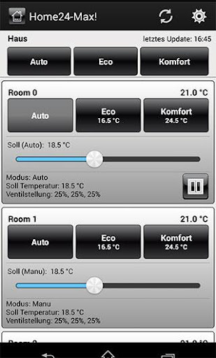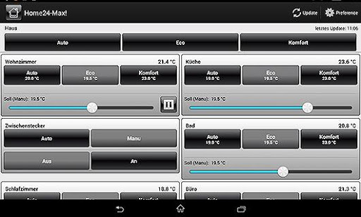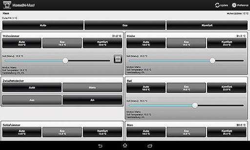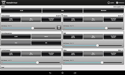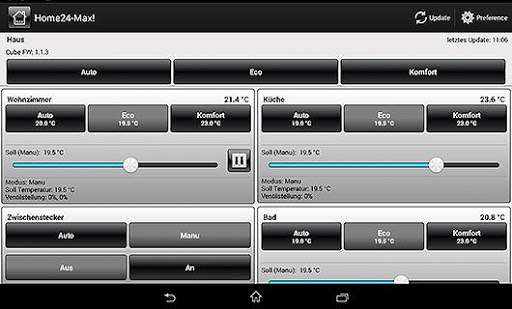 Home24-Max! allows the user to manually enter temperatures and sends the information directly (also in an offline mode) or via the Max! portal of eQ-3, ELV and Debitel-Smarthome to the Max! Cube.