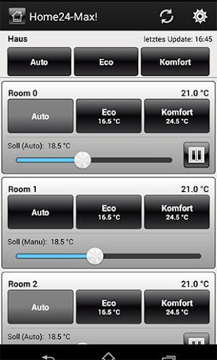 Moreover, the app provides the opportunity to change the mode (AUTO, ECO, comfort) for the whole house or single rooms.