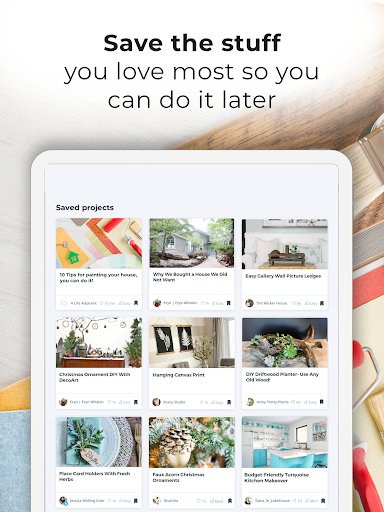* Save - Save your favorite projects to come back to when you’re ready to DIY