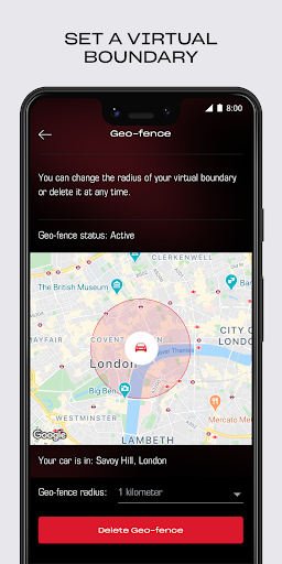 • You can define a Geo-fence around the car, and set a specific radius, to be notified if the car leaves the defined area.