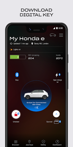 My Honda app is compatible with 2020 models onwards, including the new Honda e and selected grades of all-new Jazz.