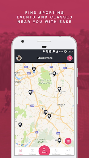 That event then appears on a map that is visible when using the app as a participant, allowing users to quickly see what is happening near them, and to sign up, pay, talk to organisers directly and have everything sorted so all you need on the day is yourself!