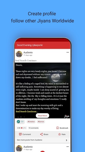 JIYA® is a social LitNet (Literature Network) for writers and readers. Showcase your quotes, poems, stories, micro-tales, articles, letters, or any kind of write-ups and design them into visually stunning posts using in-app designing tools. Share your thoughts and emotions through creative writing.