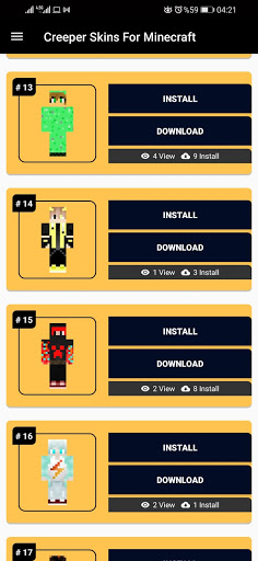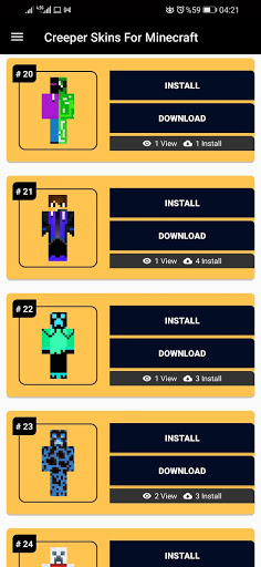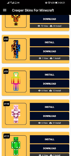 We are collected only newest cool Creeper skins and you have ability download and install each skin free one click to game or gallery.