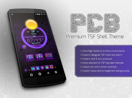 This PCB theme has been designed with utmost attention to detail. Sharp images of circuit board patterns adorn many of the TSF Shell graphical elements. Many features are included: