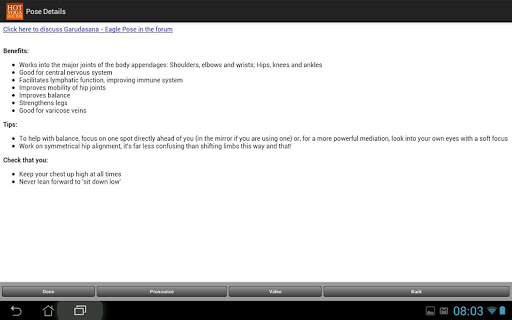 Now you can practice with detailed instructional videos from Gabrielle Raiz (the Hot Yoga Doctor), wherever you are, even if there's no internet.