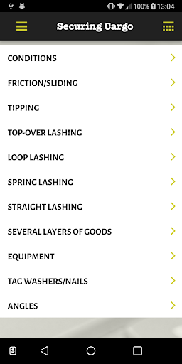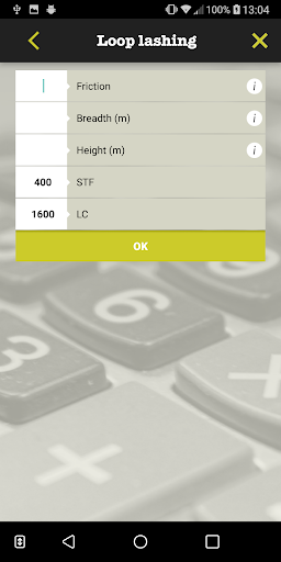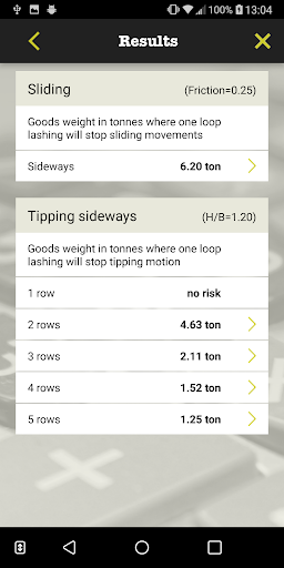 Different tables show you how much load a lashing can secure, but the app also includes an easy to use calculator, which you can use to determine the exact number of lashings required, based on the circumstances for your transport.