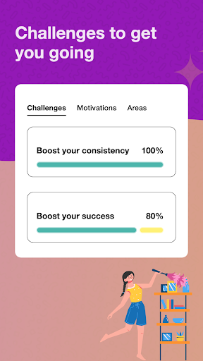 - Challenges! Be more consistent, try the build-in challenge and stay on top of your cleaning checklist