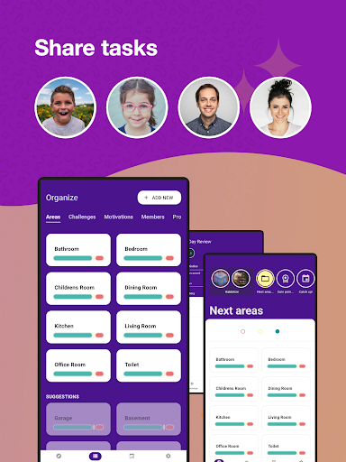 - Automatically generated personal house cleaning schedule makes chore home routine organization easy.