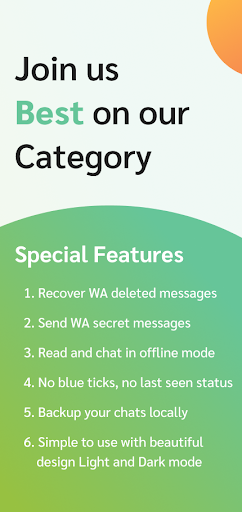 Secret WA Messenger - WAMR for WhatsApp has user friendly design, light and dark mode of your choice to enjoy private offline chatting with it, it is fully secured and all data is saved locally on your mobile.