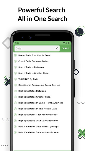 - It helps Users to Search Any Topic from - Tutorial, Formulas, Functions and Shortcuts. It works as APP's GLOBAL SEARCH.
