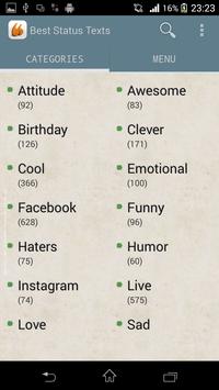 There are many categories to help you like: humor, Selfies, birthday, Haters, attitude, live, clever, sad, love.