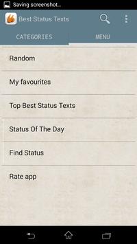 Enjoy and share on Facebook, Twitter, Instagram, Whatsapp,and others apps. Save your favorites. Play sound of the status. Compatibility with Android 2 (Gingerbread). Copy text in clipboard. Favulous design and easy usability. Status of the Day. Search status text by any your keywords.