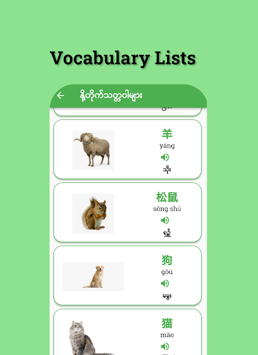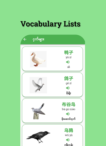 Learn Chinese words from Burmese - wide range of category - learn how to pronounce in Chinese - learn from images ** More features are to be added.