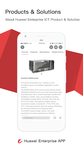 By using the application, users are able to learn about Huawei products and solutions from anywhere at any time. For more information of Huawei Enterprise Business, please visit Huawei Enterprise official website (http://e.huawei.com).
