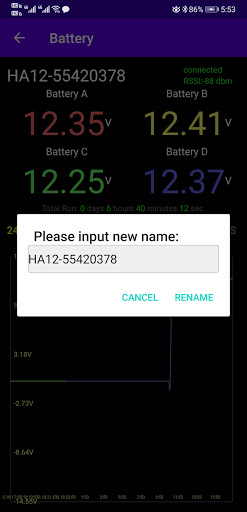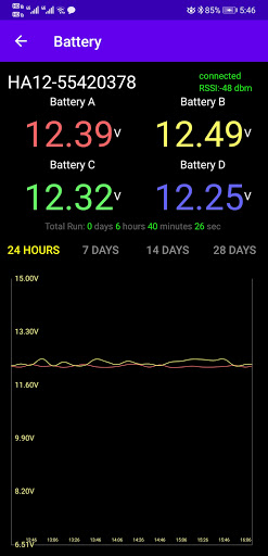The application is used to match a HA11 or HA12 battery equalizer. After the application is opened, it autmatically display the surrounding equalizer through Bluetooth scanning. After connecting with the equalizer, it reads the voltage and historical data of each battery of the equalizer. The read data is displayed in graphic form, which is convenient to check the battery status.