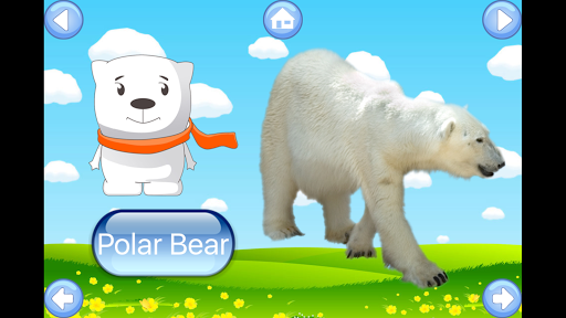 Our animal sounds app can be used even by babies. Child can tap a next button to see the next picture, use a big buttons to repeat animal English names and use a real photo to