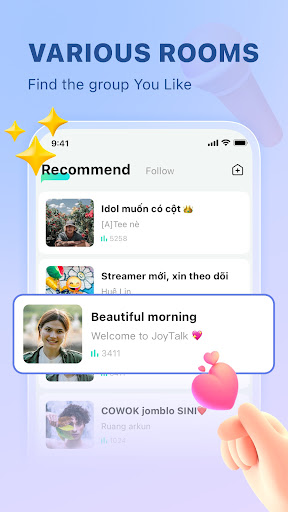 Joytalk is a real-time group voice chat and entertaining community. Here you can create your voice chat room, make friends in same interests, enjoy various party games and share your life with no distance!