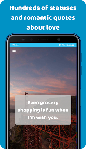 Our collection inspirational love quotes is constantly updated with new quotes, wise aphorisms and funny status about love. By installing this app, you can more accurately convey your thoughts and experiences. Make your loved one listen carefully to your words.