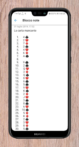 3. La carte manquante: le spectateur peut choisir n'importe quelle carte de pont, cela disparaîtra à partir d'une liste de cartes présentes dans les notes et apparaîtra son image en bas!