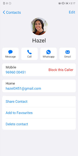 • Post Call Screen to recall, send a message or, block