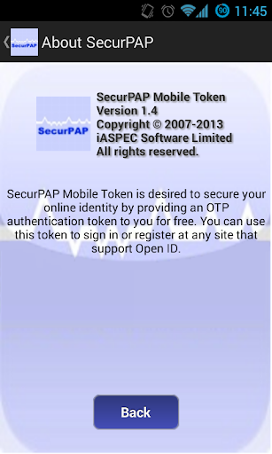 The SecurPAP Mobile Token for Android is your personal secure key for generating the one-time password (OTP) for authentication to iASPEC SecurPAP-enabled application systems. These tokens are uniquely generated at the time of activation and they are user specific.