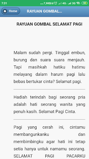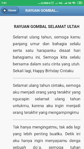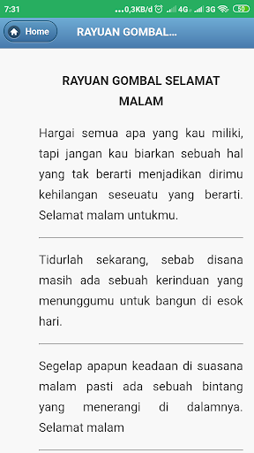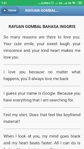 En fait, non seulement des filles comme ça, les hommes aussi s'ils sont loués seront définitivement heureux, surtout s'ils louent la personne qu'elle l'aime. Cette application fournit une collection de mots doux, de séduction et de louange qui peuvent être donnés au partenaire que vous aimez.