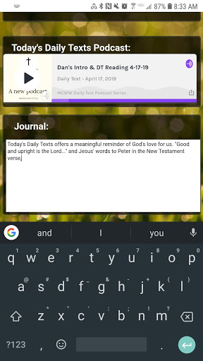 - Journaling capability to capture thoughts and insights on each day's Daily Texts