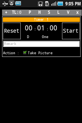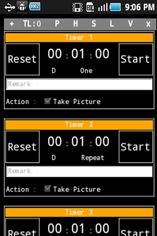 4. The timer can be used as trigger for the phone's camera to take photo. When combined with 'repeat' timing mode, it can be used to take phone repeatably with fixed time period. ( ie. time-lapse photos)