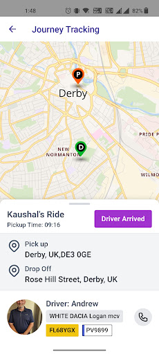 - See your driver’s and vehicle details and track their arrival on the map.