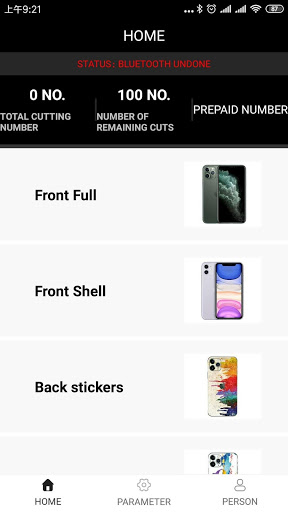 Software is maily used for cooperating with protective film cutter machine,storing datas of various model of mobile phone front film and back film.It will send datas of various models mobile phone to the machine to cut through bluetooth.
