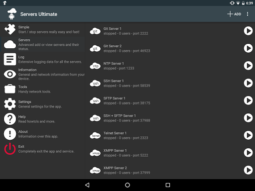 - WRITE_EXTERNAL_STORAGE: access files for the servers