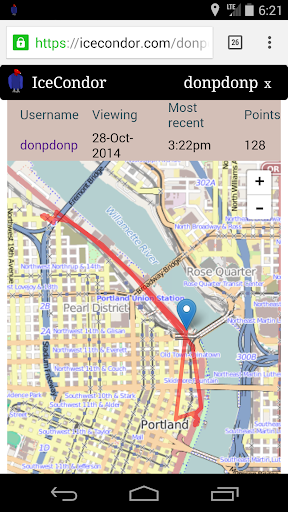 IceCondor provides all day cell phone location tracking with GPS and Cell Towers, and wifi. You can review where you have been over the day, or share your location with other IceCondor users. Signup is easy with an email address and username.